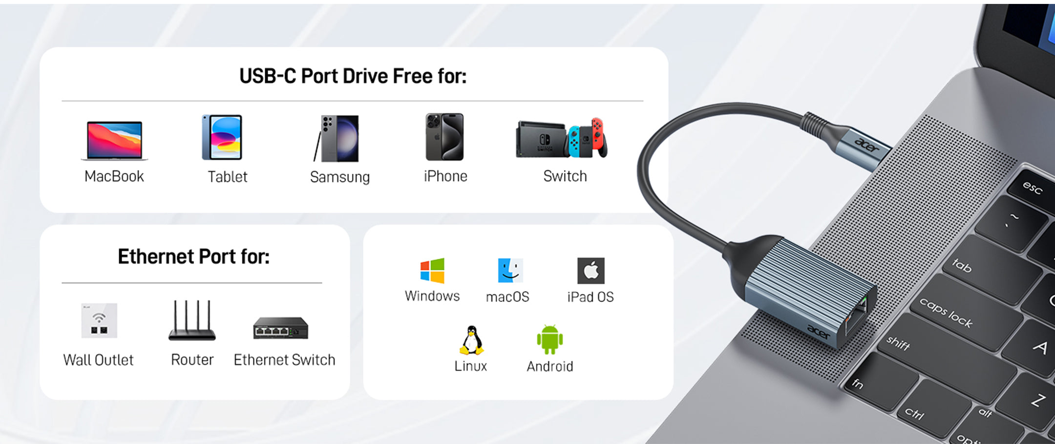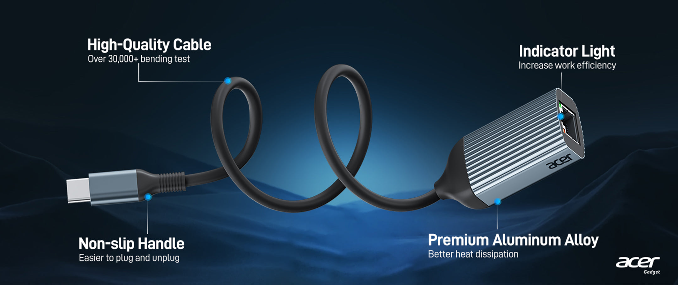 Acer Dock_option ODK440 Acer USB C to Ethernet Adapter, RJ45 to Type C Ethernet Converter(Thunderbolt 3/4 Compatible), 1Gbps Aluminum USB-C LAN Adapter