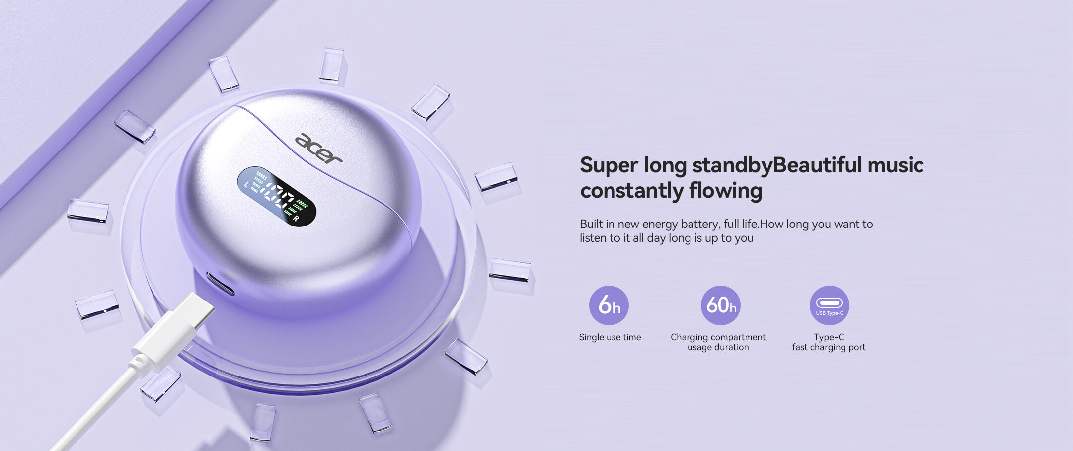 To avoid accidental touches during exercise, acer wireless earbuds come with a button control on each side
